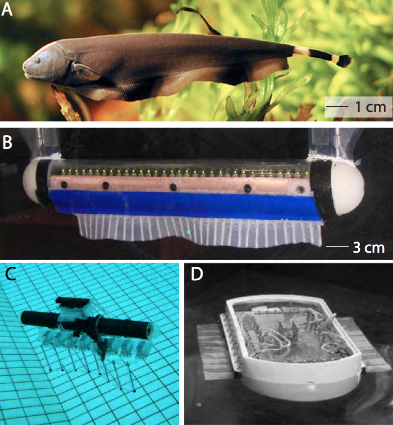 The hydrodynamics of elongated fin propulsion: from weakly electric fish to biomimetic underwater vehicles.